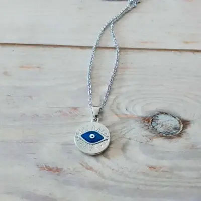 The stainless steel chain adds durability and a modern touch, making it perfect for everyday wear. Embrace the mystique and ward off negativity with this unique Evil Eye Sun Small Necklace – a chic addition to your jewelry collection.